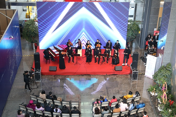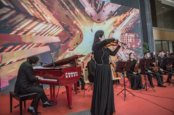琴聲時(shí)而舒緩如流泉,時(shí)而激越如飛瀑,時(shí)而清脆如珠落玉盤,時(shí)而低回如呢喃細(xì)語(yǔ)……鋼琴與提琴交織,管樂和弦樂共舞,是的,你沒有聽錯(cuò),這是古典交響樂在午間響起,在福田CBD,在白領(lǐng)云集的辦公樓,在招商銀行深圳分行大廈的營(yíng)業(yè)大廳里。2018年2月6日,招商銀行深圳分行大廈迎來(lái)了福田愛樂樂團(tuán)午間音樂會(huì)新年的第三場(chǎng)演出,也是該樂團(tuán)自2015年創(chuàng)辦午間音樂會(huì)以來(lái)的第84場(chǎng)演出。高雅的藝術(shù)氣息讓原本單調(diào)的午間趣味橫生,動(dòng)人的場(chǎng)景、美妙的樂音,在這里一一定格。