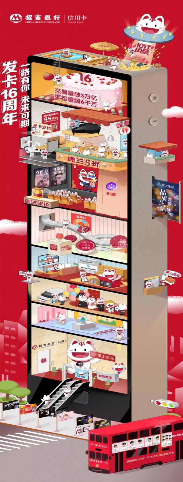 據(jù)悉,圖里這棟手機(jī)大廈,承載了招行信用卡和客戶們的共同回憶。各種靚麗的卡片、飯票、影票、旅游活動(dòng),承包了客戶們的吃喝玩樂(lè);貼心的智能客服和 AI實(shí)驗(yàn)室,為客戶提供了溫暖的服務(wù);還有客戶們都熟悉的10元風(fēng)暴、水電煤等生活繳費(fèi)、智能助理、掌上商城、積分禮遇等。