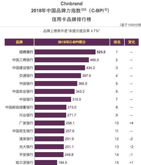 今年4月,2018年中國品牌力指數(shù)(C-BPI)品牌排名在北京權(quán)威發(fā)布。在一眾信用卡品牌中,招行信用卡以523分的絕對優(yōu)勢,再次獲得中國信用卡行業(yè)品牌力第一名。中國品牌力指數(shù)(C-BPI)實施8年來,招行信用卡7次問鼎第一,幾乎次次穩(wěn)居榜首。業(yè)內(nèi)人士分析,在市場持續(xù)變動和白熱化競爭環(huán)境下,招行信用卡屢屢摘得品牌力指數(shù)第一,這離不開與用戶的品牌情感溝通及品牌年輕化戰(zhàn)略等因素。