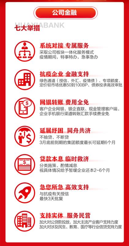 3、個(gè)貸客戶“二延”服務(wù):月供和貸款本金可在合同期限內(nèi)合理延后1-3個(gè)月還款。參加疫情防控救援的醫(yī)護(hù)人員、部隊(duì)官兵、公安干警、政府工作人員,或是受到疫情隔離影響暫時(shí)不能正常上班、失去收入來源的華夏銀行深圳分行個(gè)貸客戶,深圳分行在收到并核實(shí)客戶遞交的相關(guān)證明材料后,客戶月供和貸款本金可在合同期限內(nèi)合理延后1-3個(gè)月還款。