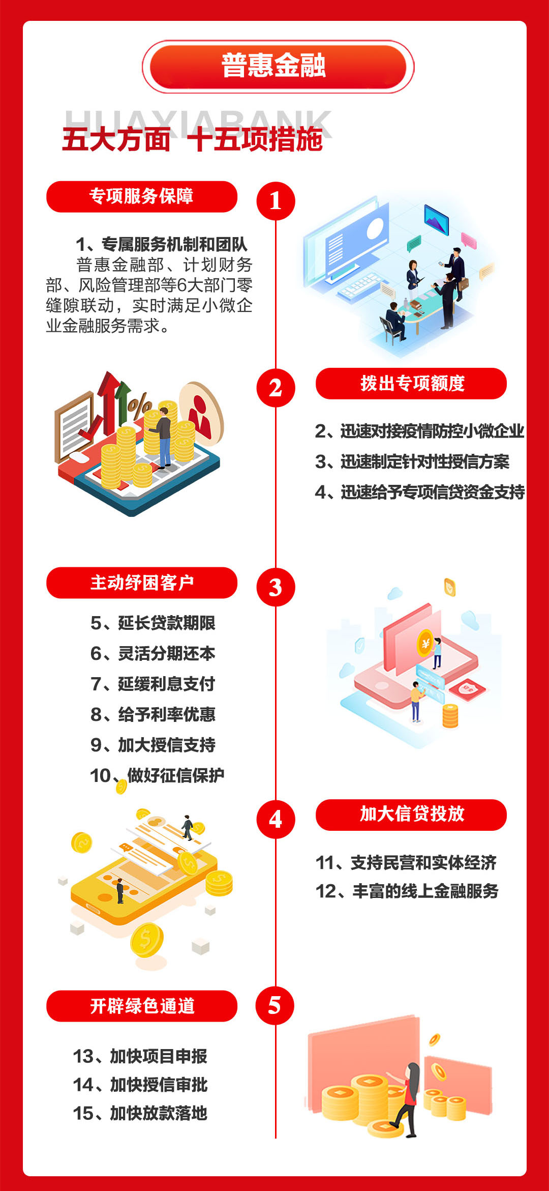 二、普惠金融服務(wù),五大方面十五項(xiàng)措施,金融服務(wù)不打折扣