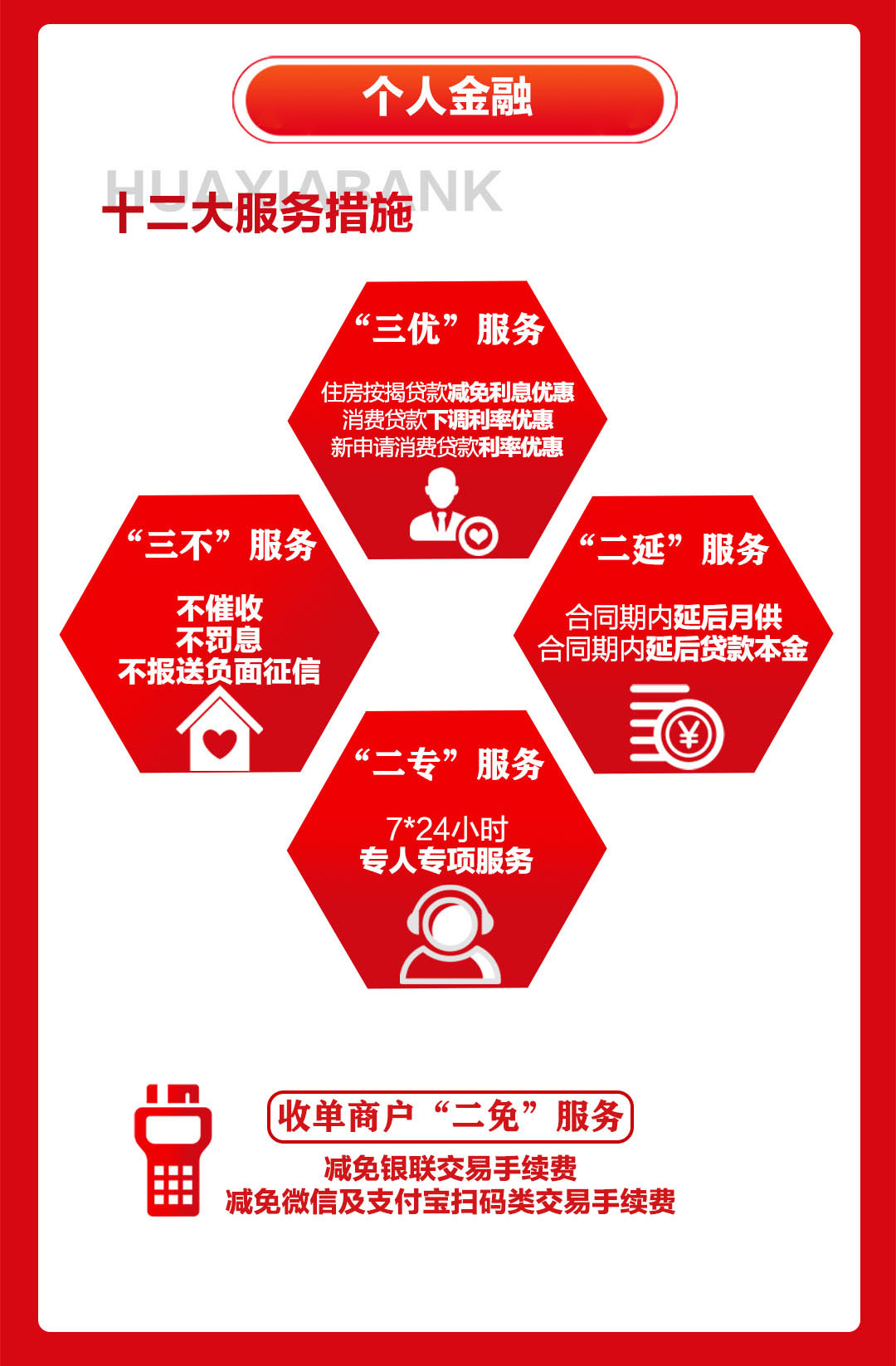 三、個(gè)人金融“三優(yōu)”、“三不”、“二延”、“二專”、“二免”,服務(wù)有力保障全面