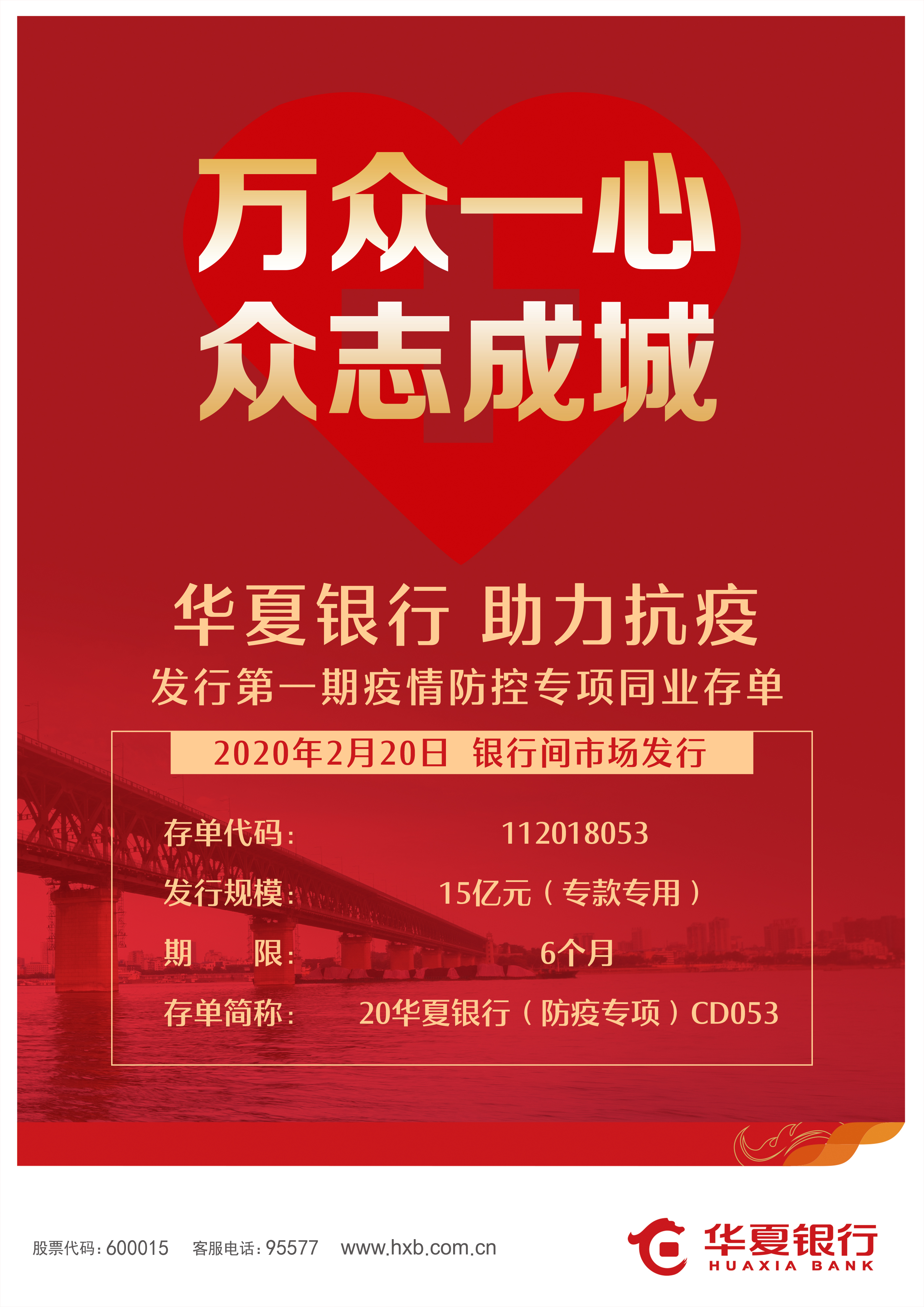 深圳新聞網(wǎng)2月20日訊 華夏銀行迅速響應人民銀行疫情防控相關工作要求,于2月20日在全國銀行間市場成功發(fā)行疫情防控專項同業(yè)存單,為疫情防控提供資金支持。本期防疫專項存單發(fā)行規(guī)模15億元,發(fā)行期限6個月,發(fā)行利率2.40%,發(fā)行獲得了各類投資機構(gòu)的廣泛關注,投資者涵蓋城商行、農(nóng)商行、證券公司和基金公司等不同類型的20多家金融機構(gòu)。