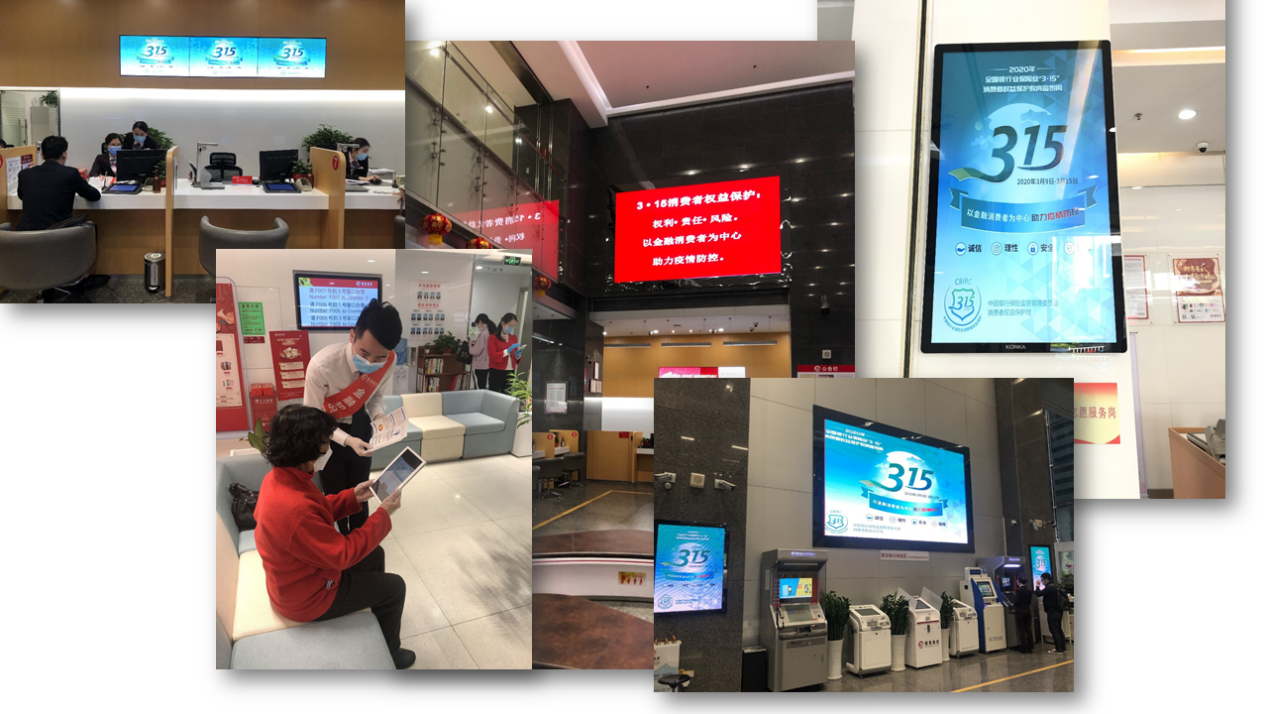 受疫情影響,在今年的3.15宣傳教育活動(dòng)期間,招商銀行深圳分行因時(shí)制宜,充分借助互聯(lián)網(wǎng)媒體渠道,加大線上宣教推廣力度。其中,原創(chuàng)漫畫(huà)、視頻等已在中國(guó)銀行業(yè)協(xié)會(huì)、中國(guó)人民銀行深圳市中心支行、招商銀行總行以及信用卡中心的官方微信、微博等各大平臺(tái)競(jìng)相上線,獲得了消費(fèi)者的廣泛好評(píng)。同時(shí),在手機(jī)銀行 App網(wǎng)點(diǎn)線上店開(kāi)辟“消保有招”3.15專(zhuān)欄,不斷開(kāi)創(chuàng)新的宣傳場(chǎng)景和消費(fèi)者觸點(diǎn)。結(jié)合電臺(tái)廣播交通頻率1062、新聞898、音樂(lè)971等傳統(tǒng)媒體平臺(tái)在早晚高峰期循環(huán)播放活動(dòng)主題,以短平快、覆蓋廣的方式大力推動(dòng)金融宣教工作,進(jìn)一步擴(kuò)充宣傳渠道和受眾面。同時(shí),以營(yíng)業(yè)廳為陣地,通過(guò)跑屏、電子海報(bào)機(jī)、電視等多媒體設(shè)備播放宣傳素材,多種渠道共同推廣打造立體宣教格局,覆蓋更多消費(fèi)者群體進(jìn)一步增強(qiáng)影響力。