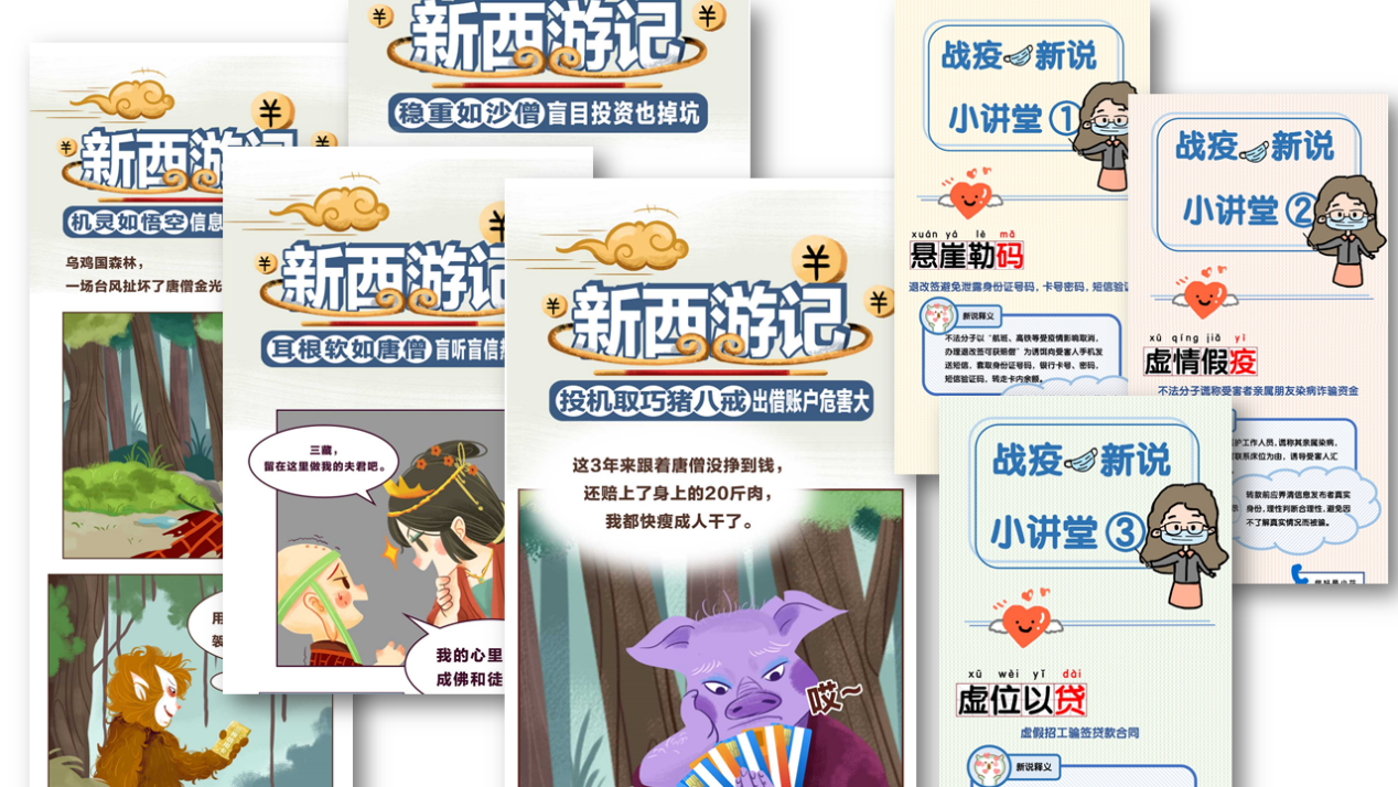 針對(duì)疫情期間頻繁出現(xiàn)電信網(wǎng)絡(luò)詐騙的情況,招商銀行深圳分行迅速反應(yīng),以原創(chuàng)漫畫(huà)、小視頻、線上直播及在線互動(dòng)問(wèn)答等新穎形式開(kāi)展抗疫防騙線上宣教,對(duì)不同類(lèi)型的詐騙套路進(jìn)行揭示和解析,如虛假售賣(mài)醫(yī)用口罩、以慈善募捐名義騙取捐款等,及時(shí)對(duì)消費(fèi)者進(jìn)行風(fēng)險(xiǎn)提示。除此之外,還以普及金融消費(fèi)者享有的八項(xiàng)法定權(quán)利、倡導(dǎo)金融消費(fèi)者依法理性維權(quán)、宣傳個(gè)人征信業(yè)務(wù)網(wǎng)上辦理、識(shí)別非法金融廣告等知識(shí)為內(nèi)容,創(chuàng)作貼合時(shí)事、實(shí)用有趣、形式多樣的宣教作品,有效提升了消費(fèi)者在疫情特殊時(shí)期的金融素養(yǎng)。