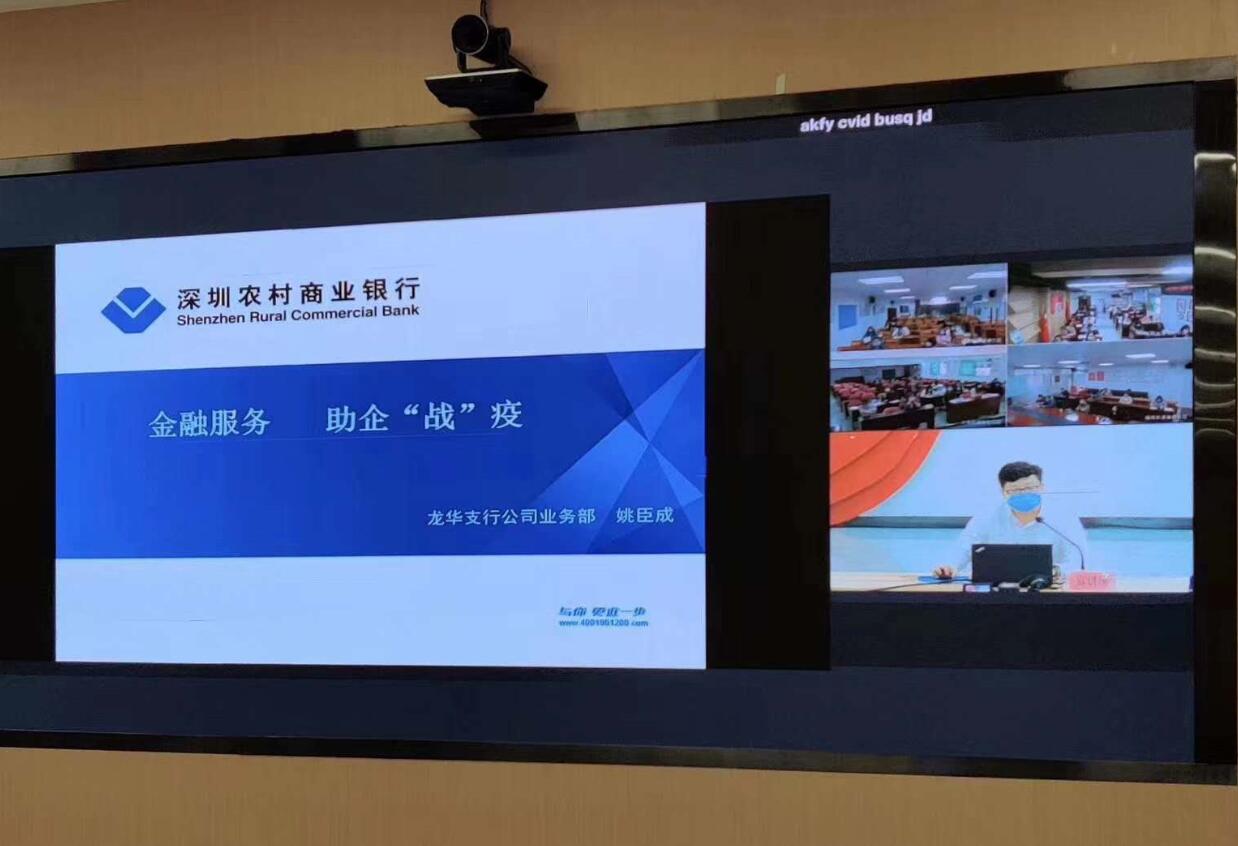 深圳農(nóng)商行龍華支行作為與會金融機構(gòu)代表,通過視頻直播及ppt演示的方式為區(qū)內(nèi)各企業(yè)詳細介紹了該行推出的抗疫專項產(chǎn)品和近期的授信優(yōu)惠政策。會后,深圳農(nóng)商行龍華支行派駐多名客戶經(jīng)理現(xiàn)場為中小微企業(yè)受理信貸需求,為企業(yè)量身定制金融方案,用實際行動為轄區(qū)內(nèi)中小微企業(yè)提供“接地氣”的綜合金融服務,助力企業(yè)復工復產(chǎn)。