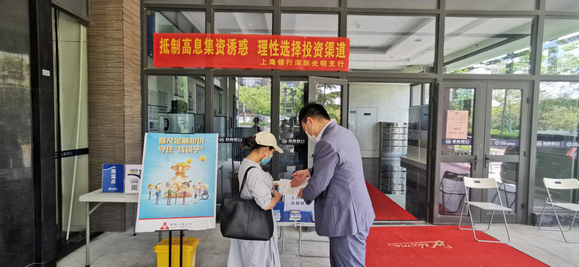 活動期間,上海銀行深圳分行在轄內支行的營業(yè)場所內通過LED電子屏、電子海報屏、電視滾動播出“信用卡不是搖錢樹,刷卡消費要適度”“莫讓校園貸‘貸’走你的青春”“不眼紅高額回報,不落入陷阱圈套”等活動宣傳口號和防范非法集資微動畫,在公共教育區(qū)擺放金融知識主題折頁,向到店客戶傳授防范電信詐騙小常識。