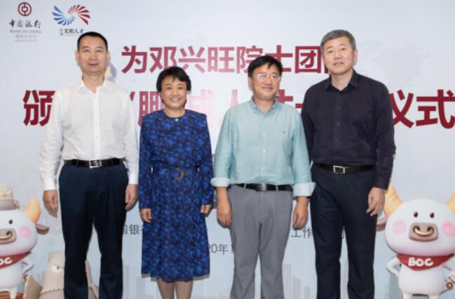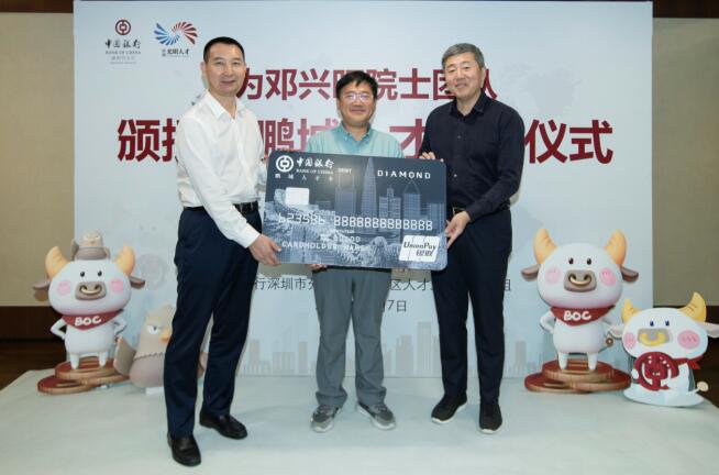 深圳新聞網(wǎng)·見圳客戶端2020年11月8日訊 昨日,深圳市光明區(qū)委常委、組織部部長繩萬青,中國銀行深圳市分行副行長韓竹代表深圳市光明區(qū)人才辦和中國銀行深圳市分行,為生物學(xué)家、美國國家科學(xué)院院士鄧興旺及部分團隊成員頒發(fā)了“中銀鵬城人才卡”鉆石卡,這是全市范圍內(nèi)首張向在深院士發(fā)放的“中銀鵬城人才卡”,標(biāo)志著這張由光明區(qū)人才辦和深圳中行共同策劃推出的人才卡實現(xiàn)了市級認(rèn)定的各層級人才全覆蓋。鄧興旺院士是深圳市杰出人才獲得者、深圳市作物分子設(shè)計育種研究院院長、深圳興旺生物種業(yè)有限公司董事長,他帶領(lǐng)團隊2010年到深圳創(chuàng)業(yè),多年來在水稻領(lǐng)域取得兩項重大技術(shù)突破,其中“潔田模式”大規(guī)模市場示范面積達(dá)到50萬畝,有效加快了中國農(nóng)業(yè)的輕簡化、現(xiàn)代化步伐。