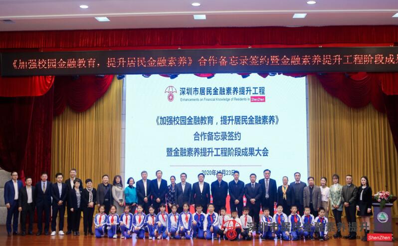 深圳新聞網(wǎng)·見圳客戶端2020年12月29日訊 近日,由中國人民銀行深圳市中心支行、深圳銀保監(jiān)局、深圳證監(jiān)局、深圳市地方金融監(jiān)督管理局、深圳證券交易所、深圳市教育局、福田區(qū)人民政府主辦,深圳市民政局協(xié)辦的《加強校園金融教育,提升居民金融素養(yǎng)》合作備忘錄簽約暨金融素養(yǎng)提升工程階段成果大會在福田實驗僑香學(xué)校舉行。深圳市政府、相關(guān)機構(gòu)領(lǐng)導(dǎo),市各金融機構(gòu)代表、市區(qū)中小學(xué)校領(lǐng)導(dǎo)、街道社區(qū)負責(zé)人以及僑香學(xué)校的師生們等逾200人出席了大會。