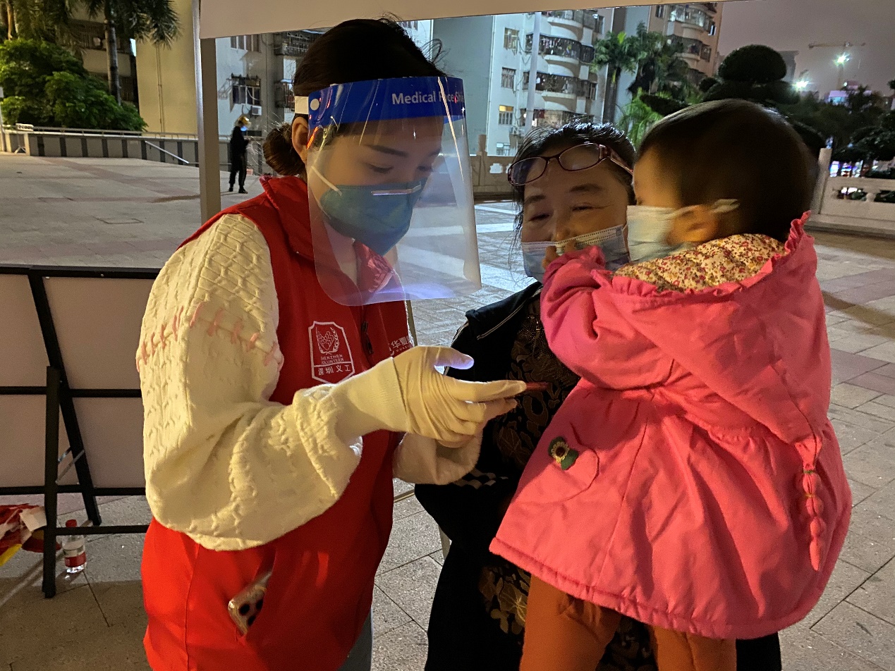 2月18日晚,寒風瑟瑟的夜里,皇崗社區(qū)核酸采樣點還排著長龍。華夏銀行深圳分行的黨員、青年團員迅速集結為“青年突擊隊”,在做好安全防護的基礎上,深入福田街道皇崗文化廣場、高發(fā)城馳廣場核酸采集點,協(xié)助防疫工作組維護現場秩序、身份信息登記等志愿服務工作,幫助社區(qū)提升核酸檢測效率。高新支行儲雨欣耐心地指導一位抱著小孩的阿姨錄入核酸檢測信息,她趕到核酸采樣點已經接近晚上8點。“剛剛從支行軋賬下班,雖然有些晚了,但我還是想來。”