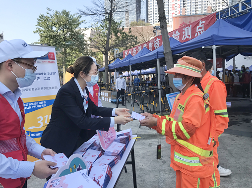 在筍崗街道,社區(qū)工作人員特地在核酸檢測(cè)點(diǎn)為環(huán)衛(wèi)工人們?cè)O(shè)置“綠色通道”,幫助他們快速完成核酸檢測(cè)??紤]到環(huán)衛(wèi)工人們普遍辨別能力較為薄弱,缺乏網(wǎng)絡(luò)與金融相關(guān)知識(shí),容易成為被騙對(duì)象,志愿者們一一上前,深入淺出地為他們普及了防范電信網(wǎng)絡(luò)詐騙和非法集資等金融基礎(chǔ)知識(shí),提醒不要輕易將個(gè)人信息泄露,讓環(huán)衛(wèi)工人掌握識(shí)破騙局的方法。