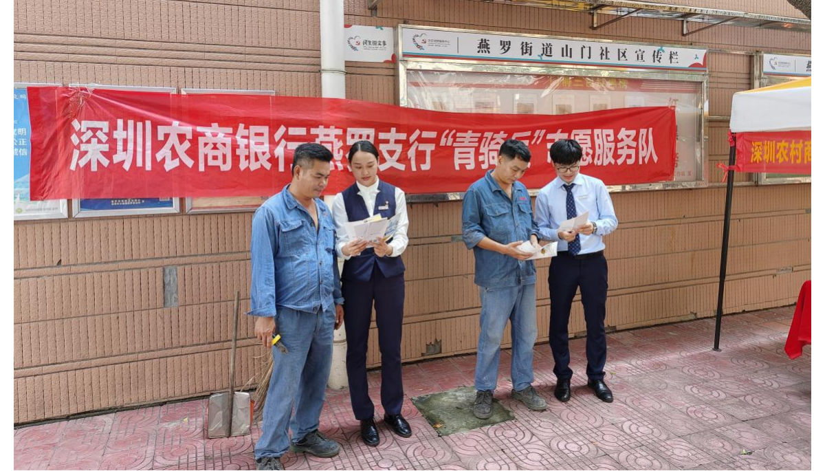 本次“青騎兵”志愿服務(wù)系列活動(dòng)是深圳農(nóng)商銀行深耕普惠金融、踐行社會(huì)責(zé)任的一個(gè)側(cè)影。未來,深圳農(nóng)商銀行將繼續(xù)秉承“以客戶為中心”的服務(wù)理念,不斷豐富和完善“青騎兵”志愿服務(wù)的內(nèi)容與形式,以“青騎兵”志愿服務(wù)項(xiàng)目為橋梁,創(chuàng)新金融服務(wù)模式,致力于讓專業(yè)金融知識(shí)觸手可及、惠及萬家,讓金融服務(wù)成為連接人心、溫暖城市的堅(jiān)實(shí)力量。(以上圖片由深圳農(nóng)商銀行提供 授權(quán)給深圳新聞網(wǎng)使用)