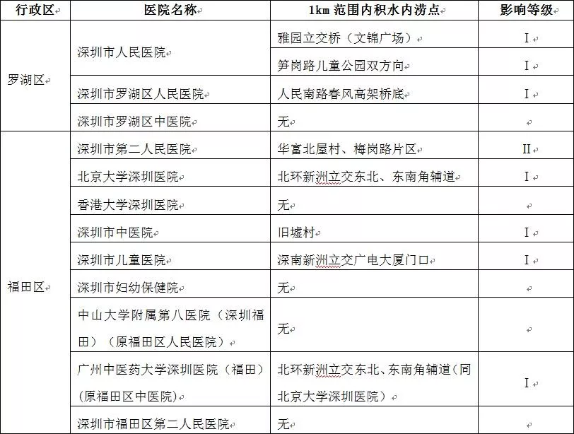 根據(jù)2019年度全市積水內(nèi)澇報(bào)送情況,深圳市水務(wù)局初步梳理出全市49家發(fā)熱門診(含1家新型冠狀病毒感染肺炎定點(diǎn)救治醫(yī)院)周邊積水內(nèi)澇點(diǎn)29處,并結(jié)合積水內(nèi)澇嚴(yán)重情況分為Ⅰ、Ⅱ、Ⅲ級(jí)。