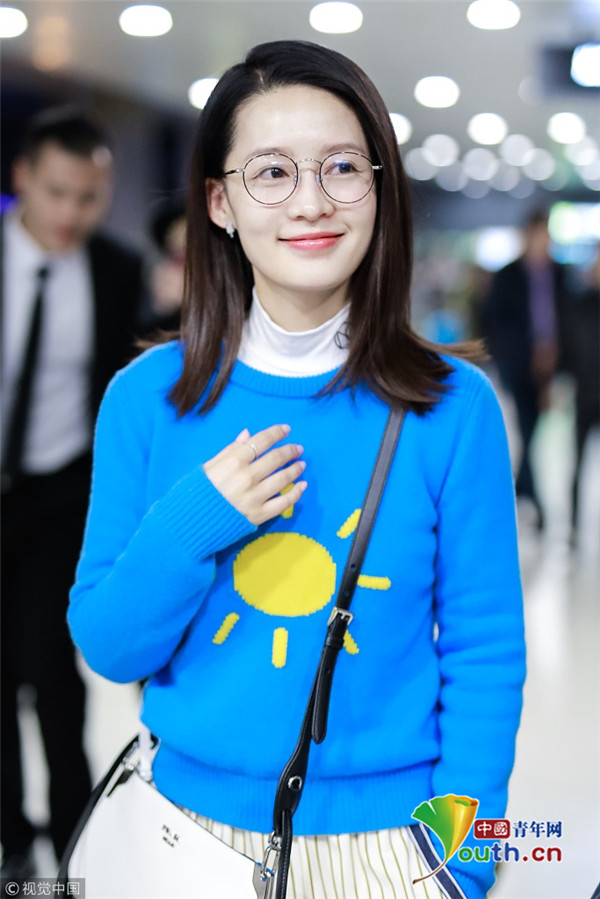 2018年11月8日,上海,李沁現(xiàn)身機(jī)場。李沁藍(lán)毛衣清新亮眼白到發(fā)光,通透淡妝凸顯干凈氣質(zhì)美膩動人。