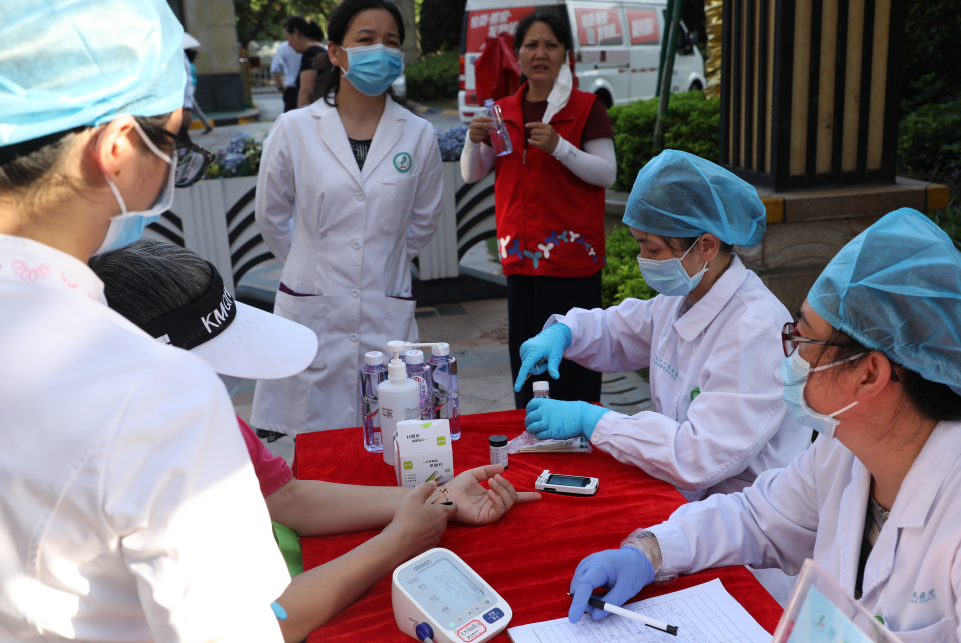 健康素養(yǎng)知識的提升不能僅僅停留在學習相關條例與政策,提高社區(qū)居民的健康意識需要深入居民身邊,讓居民足不出戶就可以享優(yōu)質(zhì)的醫(yī)療健康咨詢服務,滿足居民的醫(yī)療和保健需求。本次活動現(xiàn)場的義診專家現(xiàn)場認真接待每一位前來問診的群眾,仔細的為居民測量血壓、血糖,耐心的解答群眾咨詢,診斷各類常見病、多發(fā)疾病,指導群眾規(guī)范用藥。盡量做到讓每一位前來就診的群眾享受到“家門口”優(yōu)質(zhì)的醫(yī)療服務。