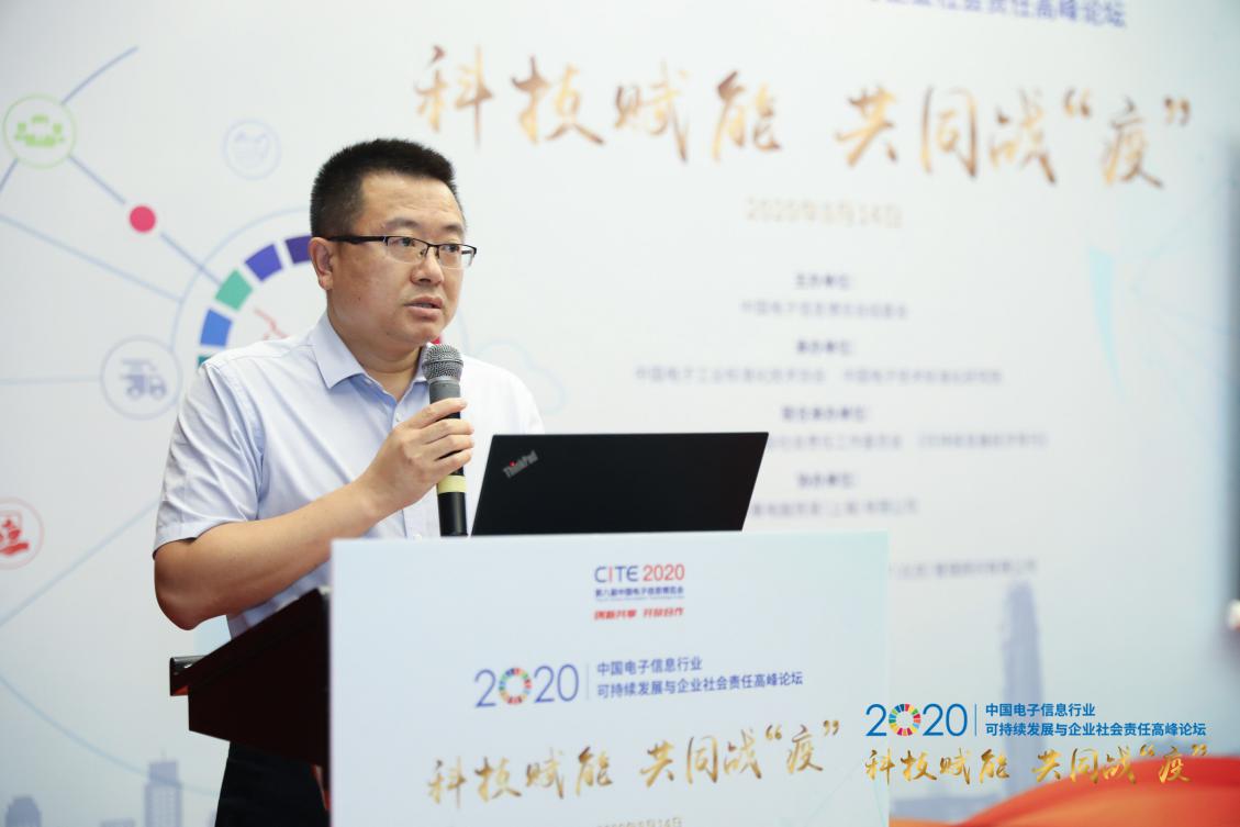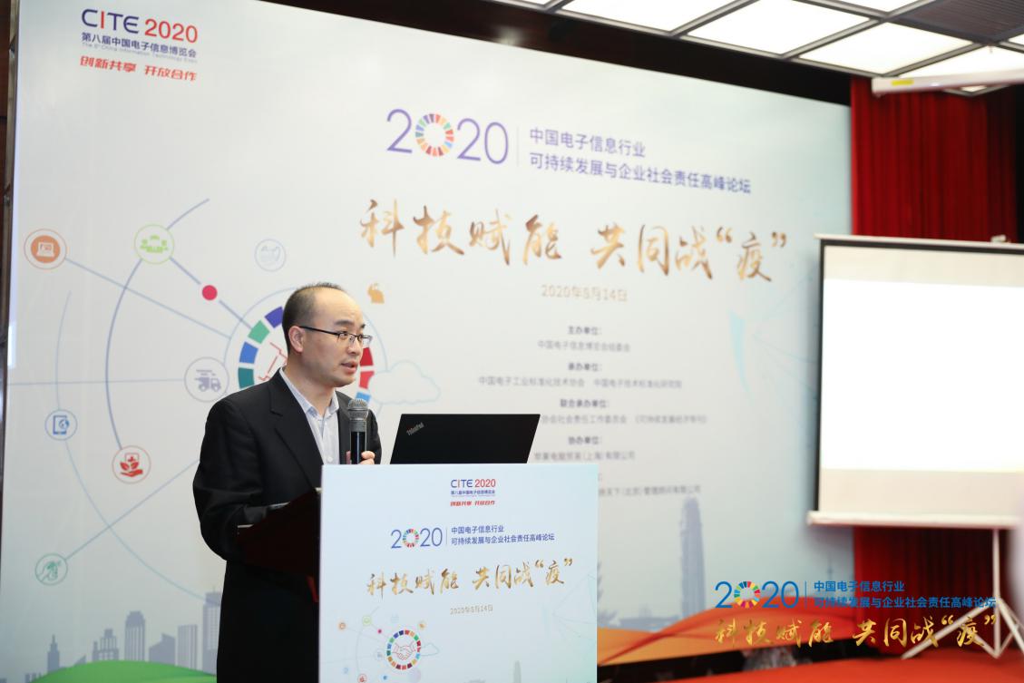 工業(yè)和信息化部產(chǎn)業(yè)政策與法規(guī)司綜合處處長徐華在致辭中表示:面對新型冠狀病毒肺炎疫情的洶涌來襲,電子信息行業(yè)企業(yè)積極承擔(dān)社會責(zé)任,構(gòu)筑起了戰(zhàn)“疫”堅(jiān)固防線,充分發(fā)揮自身專業(yè)優(yōu)勢,運(yùn)用信息技術(shù)能力,為抗擊疫情、復(fù)工復(fù)產(chǎn)做出了積極貢獻(xiàn)。產(chǎn)業(yè)政策與法規(guī)司作為工業(yè)和信息化部負(fù)責(zé)推動(dòng)企業(yè)社會責(zé)任建設(shè)的主管司局,為深入貫徹落實(shí)黨中央國務(wù)院關(guān)于企業(yè)社會責(zé)任工作的要求,進(jìn)一步加強(qiáng)新時(shí)代工業(yè)通訊業(yè)企業(yè)社會責(zé)任的建設(shè),2020年,我們積極推進(jìn)《關(guān)于推動(dòng)工業(yè)通信業(yè)企業(yè)社會責(zé)任指導(dǎo)意見》的研究與出臺,探索建立企業(yè)社會責(zé)任意識和能力提升機(jī)制,推動(dòng)企業(yè)社會責(zé)任培訓(xùn)和宣傳交流工作。同時(shí),通過搭建企業(yè)社會責(zé)任公共服務(wù)平臺,為宣傳企業(yè)社會責(zé)任政策和為企業(yè)開展社會責(zé)任信息披露及溝通交流提供服務(wù)。