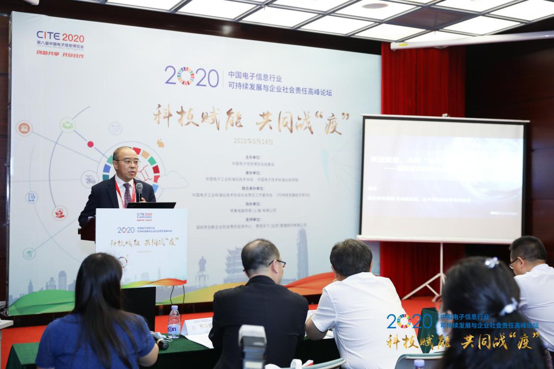 見圳客戶端·深圳新聞網(wǎng)2020年8月18日訊 近日,中國電子信息行業(yè)2020可持續(xù)發(fā)展與企業(yè)社會責(zé)任高峰論壇在深圳會展中心成功舉行。本次論壇由中國電子信息博覽會組委會主辦,中國電子工業(yè)標(biāo)準(zhǔn)化技術(shù)協(xié)會、中國電子技術(shù)標(biāo)準(zhǔn)化研究院承辦,中國電子工業(yè)標(biāo)準(zhǔn)化技術(shù)協(xié)會社會責(zé)任工作委員會和《可持續(xù)發(fā)展經(jīng)濟(jì)導(dǎo)刊》雜志社聯(lián)合承辦,行業(yè)內(nèi)領(lǐng)先企業(yè)積極參與,以“科技賦能共同戰(zhàn)‘疫’”為主題,共同交流分享電子信息行業(yè)企業(yè)抗擊新冠肺炎疫情的典型經(jīng)驗(yàn)和做法。