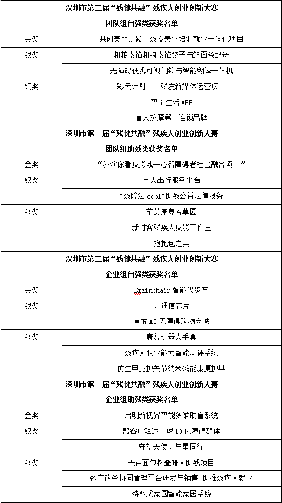 本屆大賽分為宣傳發(fā)動(dòng)、報(bào)名審核、初賽、復(fù)賽、決賽等五個(gè)階段,設(shè)團(tuán)隊(duì)組和企業(yè)組,每個(gè)組別分別設(shè)自強(qiáng)類和助殘類兩個(gè)類別,共四個(gè)參賽組別,每個(gè)參賽組別分別設(shè)金獎(jiǎng)1名、銀獎(jiǎng)2名、銅獎(jiǎng)3名及優(yōu)勝獎(jiǎng)若干名,獲獎(jiǎng)項(xiàng)目最高可獲得20萬(wàn)元的現(xiàn)金資助,各參賽項(xiàng)目將持續(xù)享有各類創(chuàng)業(yè)支持及培育保障。