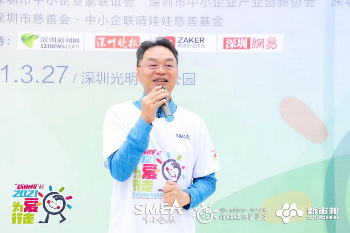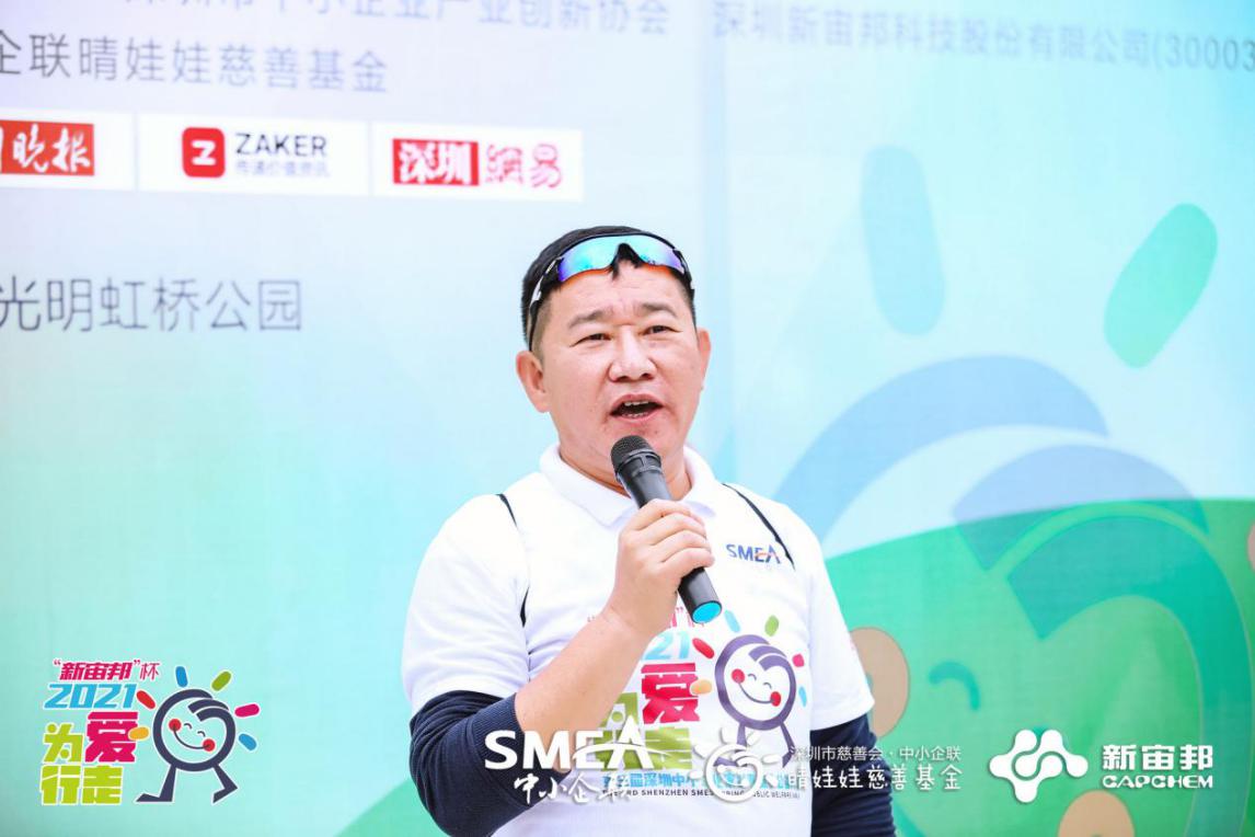 作為本屆愛心冠名企業(yè)深圳新宙邦科技股份有限公司董事長(zhǎng)覃九三也在活動(dòng)開始前對(duì)前來參加公益活動(dòng)的嘉賓表示感謝,他表示“今天很高興新宙邦能成為“第三屆深圳中小企業(yè)家迎春公益徒步”的愛心贊助商,??這是一個(gè)非常有意義的活動(dòng);??新宙邦創(chuàng)立已經(jīng)25年,主要從事電子化學(xué)品和功能材料,??我們?cè)诎l(fā)展企業(yè)的同時(shí),??關(guān)心和回報(bào)社會(huì)是新宙邦的一種傳統(tǒng),我們希望能幫助更多有需要的群體,多給他們一些關(guān)愛,不斷踐行社會(huì)責(zé)任;最后,希望今天大家能盡情享受這個(gè)明媚的時(shí)光,為愛行走。”