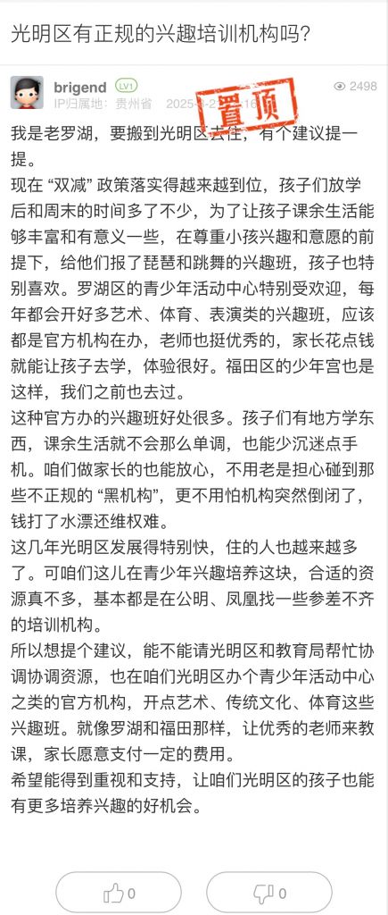 21. 帖文《光明區(qū)有正規(guī)的興趣培訓(xùn)機構(gòu)嗎?》