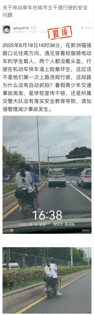 7. 帖文《關(guān)于電動單車在城市主干道行駛的安全問題》