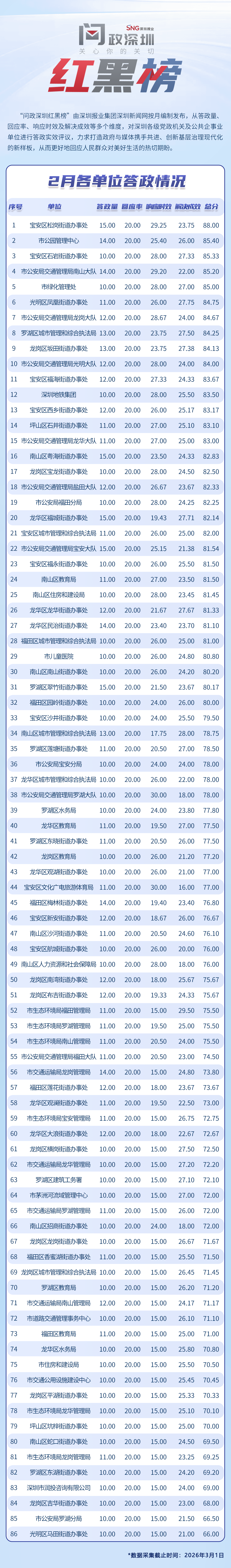 2026年2月,深圳各級黨政機關(guān)及公共企事業(yè)單位在“深圳論壇”答政情況如下: